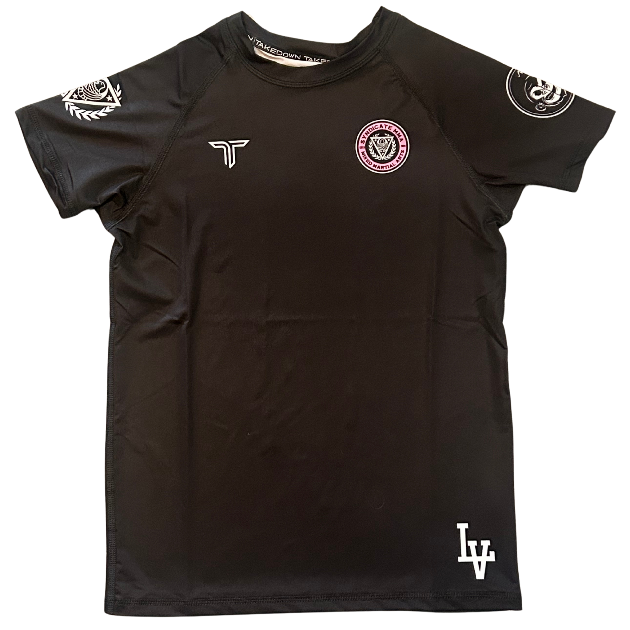 Syndicate MMA crest front + back, sleeve logo hits