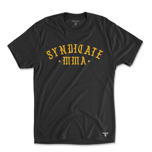 ✔ Bold Gold Print – Iconic Syndicate MMA lettering with an old-school, fight-ready aesthetic.