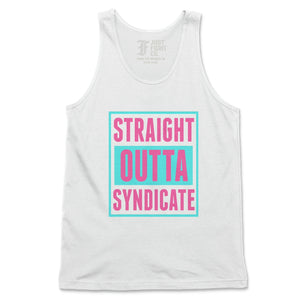 A fresh spin on a classic design. The Straight Outta Syndicate tank brings bright neon energy to the gym or the street with bold pink and aqua block lettering up front, and a clean Syndicate crest on the upper back.