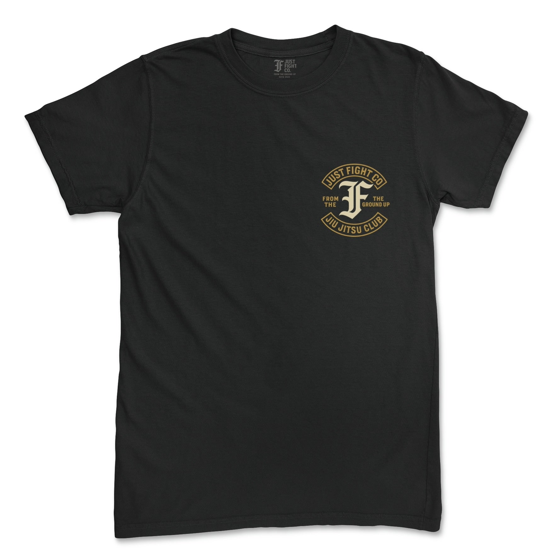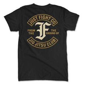 Simple, bold, and built with purpose. The Jiu Jitsu Club Tee features the signature Just Fight Co. logo surrounded by clean block lettering—From the Ground Up. With its back design, this one nods quietly to a different kind of brotherhood.